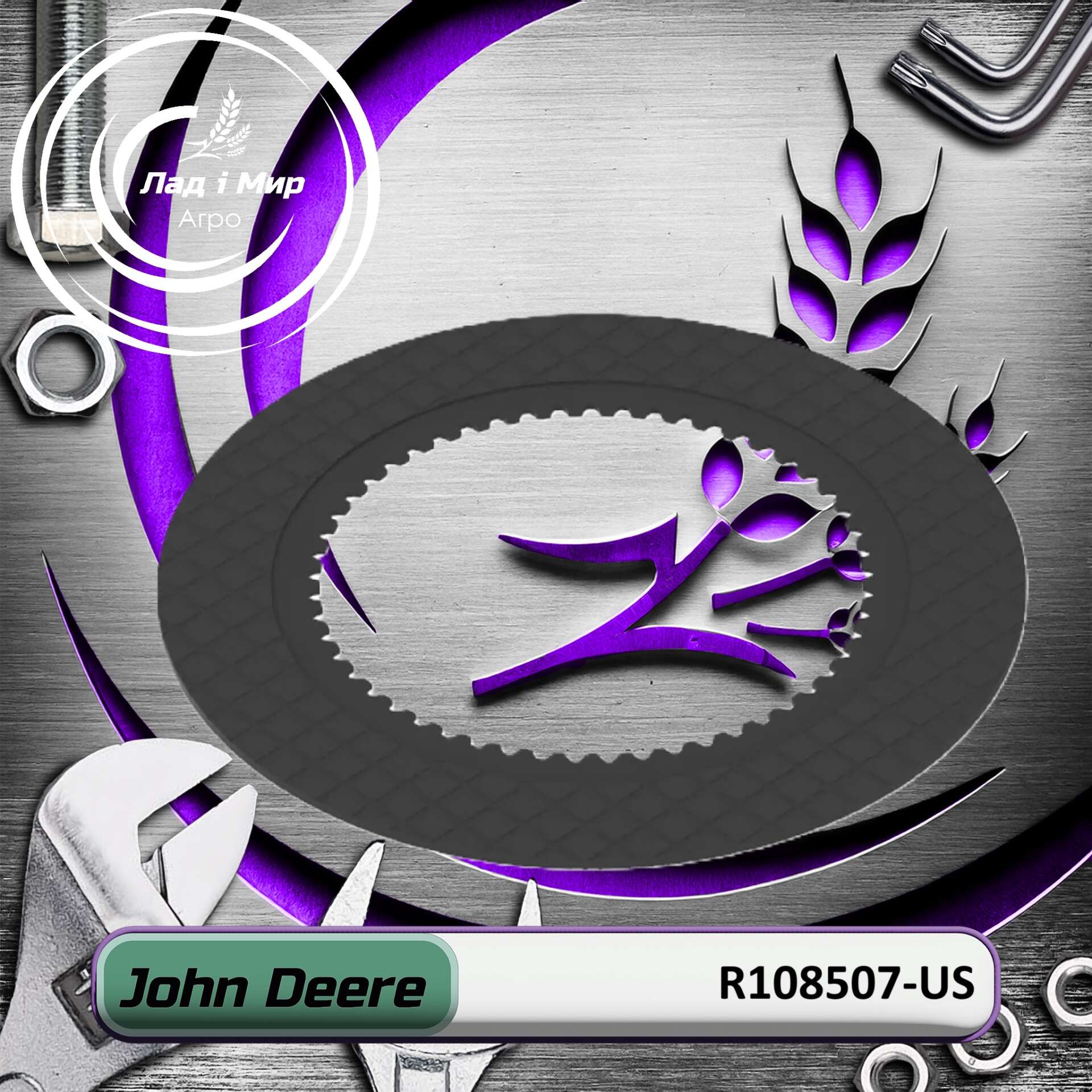 Компанія “Лад і Мир агро” – це Ваш надійний партнер. Ми зробимо все можливе і неможливе. Ми якомога швидко доставимо до Вас Диск зчеплення R108507, R108507-US до John Deere Вживане в найкоротший термін. Ми співпрацюємо з усіма перевізниками по всій Україні.
