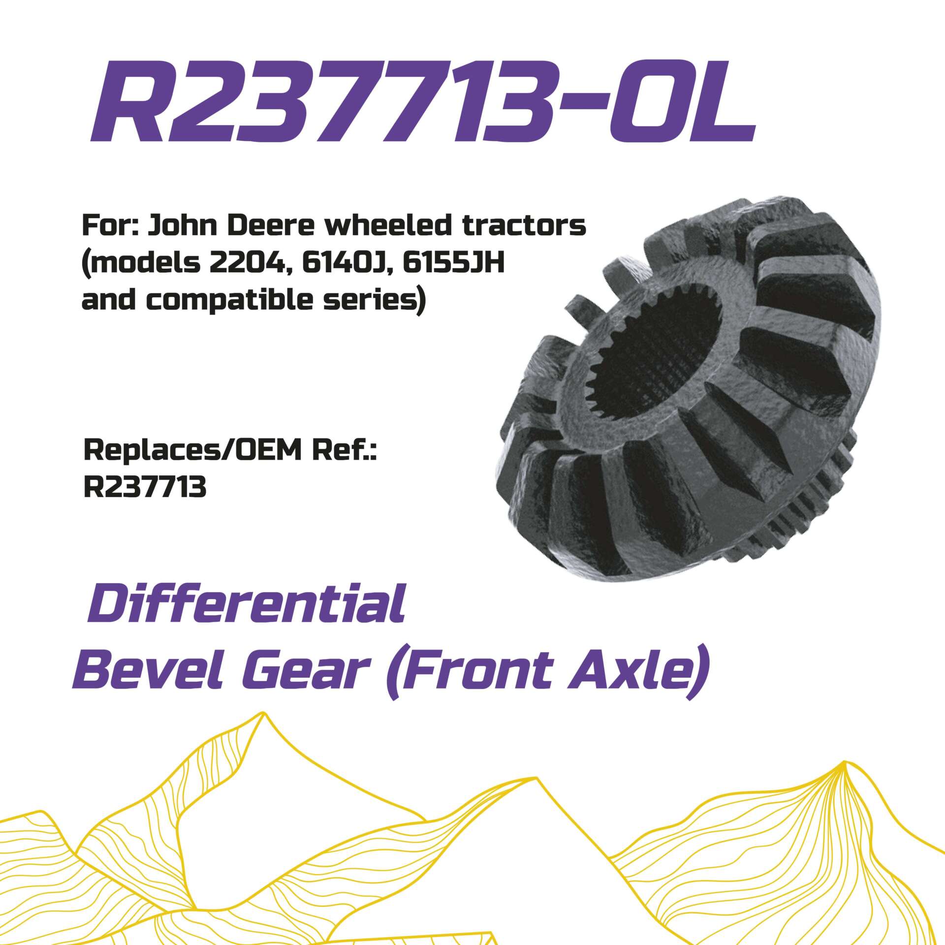 Шестерня конічна R237713-OL, R237713, TR120918, R133149 до John Deere на Трактор 2204, 6140J, 6155JH